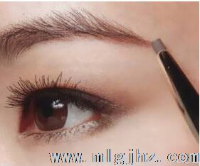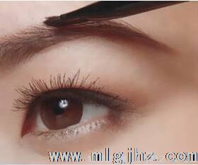 5:用啡色眉笔勾画眉尾,并稍微加长。