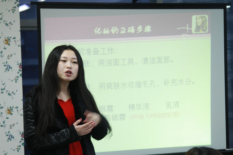 平时各位在购物的时候有没有在意导购人员的形象了?当你看到导购人员漂亮的外表的时候,是不是也有进去购物的冲动了?不管是企业也好,还是销售人员的形象都是十分重要的,这也将影响到她们的销售业绩。因此富康国际受海伦公主服饰有限公司之邀为公司全体员工进行了一场员工形象设计化妆讲座。富康国际导师根据海伦公主服装特色,特别的给员工们讲解了一些适合于海伦公主风格的妆面和发型。让每一位员工都能轻易地把自己打扮出公主范儿,在销售工作中能更好的体现海伦公主的公司形象,让销售业绩更上一层楼。