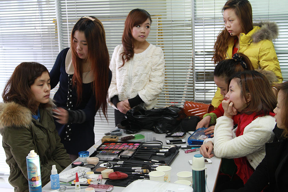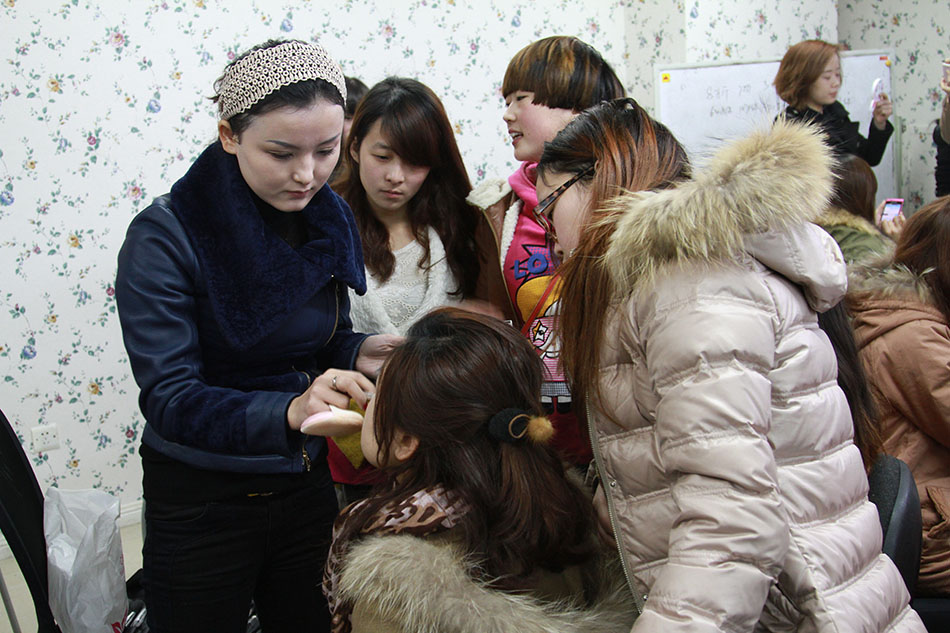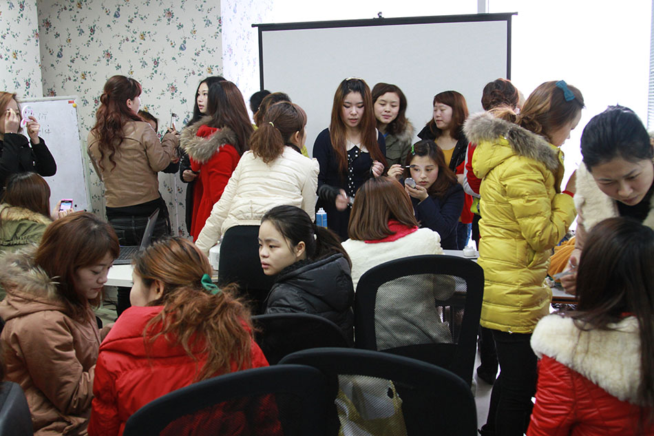 学员们第一次感觉到在非专业人示面前自己的专业度。当听到那些员工们十分崇拜的叫自己化妆老师的时候,当看着她们崇拜自己的化妆技术的时候,同学们更加的对自己所从事的行业充满了信心。相信在未来的化妆师道路上,她们将会走得更好,更远!这里希望每一位想要从事化妆师行业的朋友们,只要你喜欢这个行业,不要怕自己学不会,只要肯努力学习,按老师教的内容去练习。每一位学员都能成为一名优秀的整体形象设计化妆造型师!