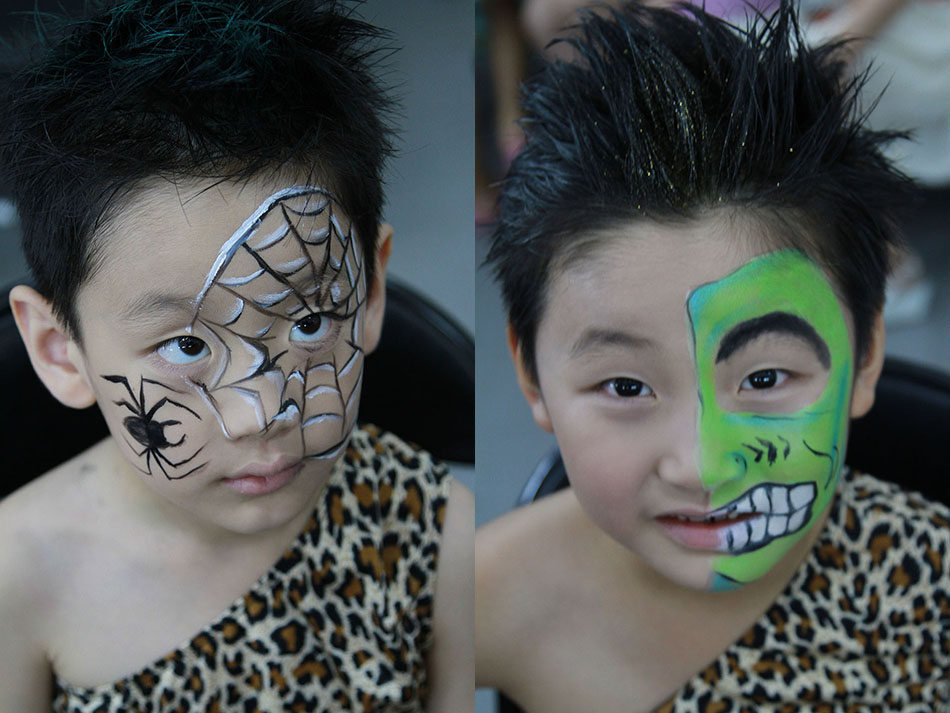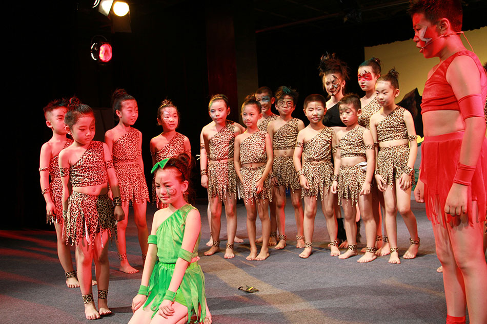 由于所有演员年纪都很小,大部份年龄在4-8岁之间,考虑到既要不影响儿童单沌天真的心灵,但又不缺失剧中魔鬼角色的需要。所以经过富康国际老师的设计,将剧中恶魔角色采用脸上局部使用一些鬼怪彩绘来表现。这样既不会惊吓到小演员,也不会给看音乐剧的小朋友带来太大的心灵负担。但同时也很好的塑造了小朋友们心中的鬼怪角色形象。下面就让我们一起来看看小演员们精彩的表现吧。