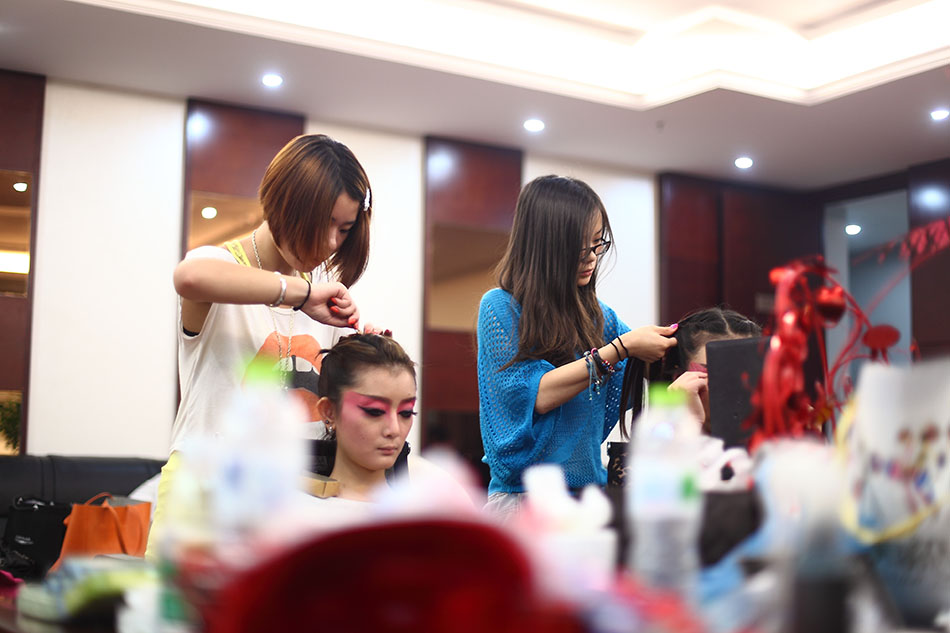 成美教育受某模特经济公司所托,为9月29日的一场中交王府景业主答谢晚会作一个创意 T台秀设计。对于创意妆及这种商业创意 T台秀自然是咱们成美教育的拿手“菜”了。模特经济公司的王总曾参加过我们以前某一届学员毕业典礼,对于我们学员的创意形象设计毕业作品也是十分的满意,所以这次特地找到了我们为此次T台秀做一个中国风格的创意T台秀。在参观我们了应届毕业学员作品后,综合了一些王总的个人意见后,成老师很快设计出了几款十分大气的中国红风格的创意妆面。当然这些创意妆面全都需要手工制作一些配饰,因为这些饰品都是市场上买不到的。在与王总初步达成合作意向后,成老师开始安排学员和老师购买相关材料,并着手制作所需要的相关饰品。在设计出所有创意T台造型后,找了一个模特试了所有妆面及服装,拍摄出照片交给了主办方,对方看后十分满意。9月29日,成老师携富康国际师生前往完成此次创意T台造型。下面就来看看我们摄影王老师在现场为大家拍回来的一些现场图片吧。